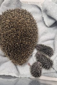 Another precious bundle of (4) hoglets ranging from 27g to 33g were brought in to us yesterday afternoon after having been found buried in a bag of peat. We had