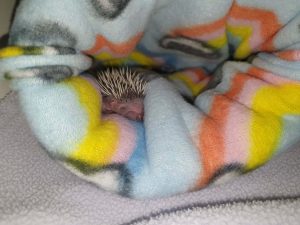 Some idiot thought it would be a good idea to paint this juvenile hedgehog blue so that it looked like sonic – no need for it at all.