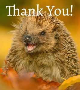 We would like to thank each and every one who has supported us throughout this very busy and turbulent year. From donations of newspapers, food for the hedgehogs, consumables such