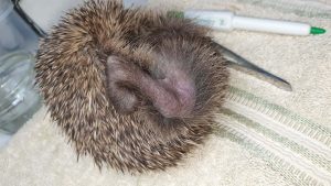 This 260g juvenile female came in to us today, one of three we have had come in today, having been found out in daytime, wobbling around. She is quite cold