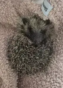 This little chap is Chestnut, he came to us weighing just 169g and had really bad ringworm scabbing and flystrike around his skirt. He has lost quite a few prickles