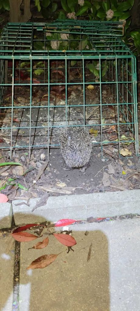 If you have a ground bird feeding cage, please be aware that hedgehogs can get stuck in them. Placing the cage on a brick at each corner or removing it at night will prevent this.