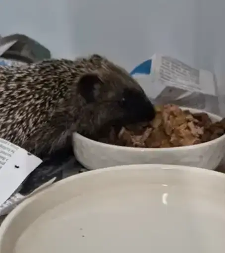 Little Pepper came in as an orphan hoglet and now weighs 486g. As you can see, he has a good appetite, so is putting on weight nicely.
